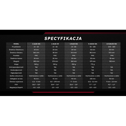 Luneta Noxar, dzięki regulacji paralaksy, pozwala na precyzyjne korzystanie z dużych przybliżeń bez utraty ostrości obrazu. Rozwiązanie to zwiększa także kompatybilność z dostępnymi na rynku nasadkami noktowizyjnymi, doskonale współpracując z modelem Noxar Lunar. Regulacja paralaksy dostępna jest tylko w modelach 3-18x56 oraz 2.5-20x50.