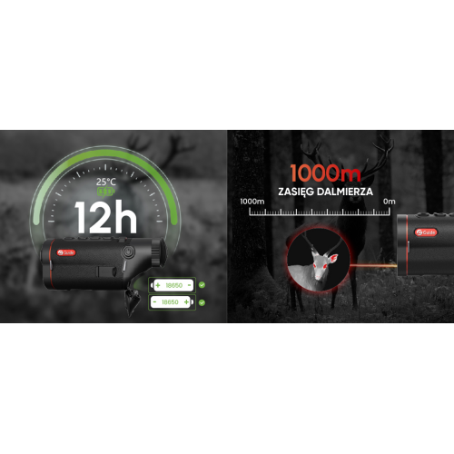 Zintegrowany moduł dalmierza laserowego (LRF) został płynnie wkomponowany w konstrukcję urządzenia, zapewniając wysoką mobilność i funkcjonalność. Pozwala na dokładne określenie odległości do celu nawet do 1000 metrów.