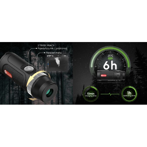 Ekran AMOLED o przekątnej 0,32 cala zapewnia bogate, nasycone kolory oraz płynny obraz, oferując znakomite efekty wizualne. Komfortowy okular i 25 mm odległości od źrenicy zmniejszają zmęczenie oczu, zapewniając doskonałe wrażenia wizualne podczas długotrwałych obserwacji.
