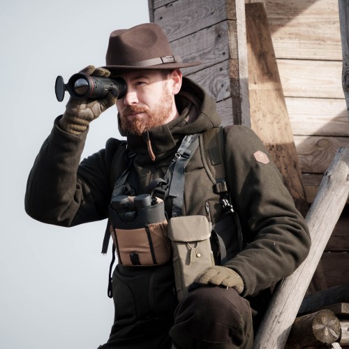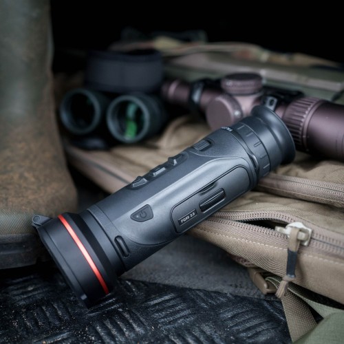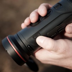 Urządzenie zostało wyposażone w stałe powiększenie optyczne 2,7x, które w połączeniu z aż 8-krotnym zoomem cyfrowym gwarantuje nam możliwość precyzyjnej identyfikacji celu na dużych dystansach. Cztery stopnie powiększenia pozwolą nam na idealne dostosowanie do dystansu dzielącego nas od zwierzyny. Do naszej dyspozycji oddane zostały pięć palet kolorystycznych wyświetlanego obrazu (Black Hot, White Hot, Red Hot, Red Monochrome, Green Monochrome, Fusion), dzięki czemu możemy dostosować go do naszych preferencji. Pokrętło regulacji ogniskowania umiejscowione z tyłu urządzenia pozwoli nam natomiast na idealne dopasowanie ostrości obrazu do dystansów przy użyciu jednej ręki.
