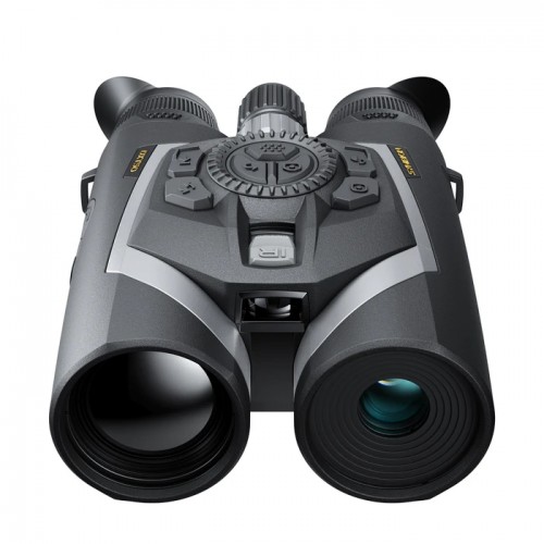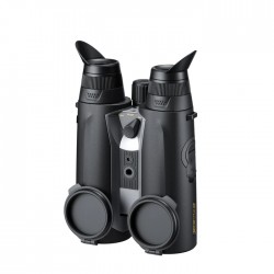 Nowoczesny, a jednocześnie klasyczny design lornetki zapewnia doskonałą ergonomię oraz wysoki komfort nawet podczas długotrwałych obserwacji. W kanale termowizyjnym zastosowano sensor nowej generacji o rozdzielczości HD 1280×1024 px, oferujący wyjątkowo wysoką szczegółowość obrazu, przy wielkości piksela 12 µm i czułości sNETD <20 mK. Wysoka czułość pozwala na wykrywanie minimalnych różnic temperatur, nawet w trudnych warunkach, takich jak mgła, opady czy wysoka wilgotność powietrza. Optyczne powiększenie 2×, z możliwością cyfrowego zwiększenia aż do 16×, umożliwia skuteczną identyfikację celu na dużych dystansach. Zastosowany germanowy obiektyw najwyższej klasy zapewnia zasięg detekcji obiektów wielkości sylwetki człowieka aż do 2300 metrów.