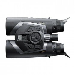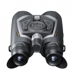 Nowoczesny, a jednocześnie klasyczny design lornetki zapewnia doskonałą ergonomię oraz wysoki komfort długotrwałych obserwacji. W kanale termowizyjnym zastosowano sensor nowej generacji 640×480 o wielkości piksela 12 µm i wysokiej czułości sNETD <18 mK. Tak wysoka czułość pozwala na wykrywanie minimalnych różnic temperatur, nawet w trudnych warunkach, takich jak mgła, opady czy wysoka wilgotność powietrza. Optyczne powiększenie 4×, z możliwością cyfrowego zwiększenia aż do 32×, umożliwia skuteczną identyfikację celu na dużych dystansach. Zastosowany germanowy obiektyw najwyższej klasy zapewnia zasięg detekcji obiektów wielkości sylwetki człowieka aż do 2300 metrów.
