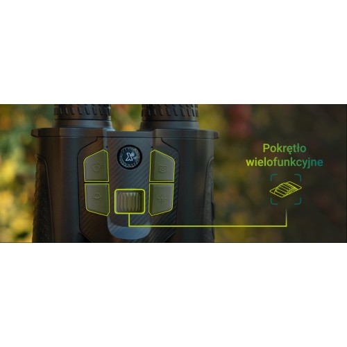 Innowacyjne wielofunkcyjne pokrętło, pełniące rolę głównego kontrolera urządzenia oraz umożliwiające płynną zmianę powiększenia, zostało zaprojektowane na wzór klasycznej lornetki. W połączeniu z wyraźnymi, łatwo wyczuwalnymi przyciskami pozwala na intuicyjną i precyzyjną obsługę bez konieczności odrywania wzroku od obserwowanego obszaru.